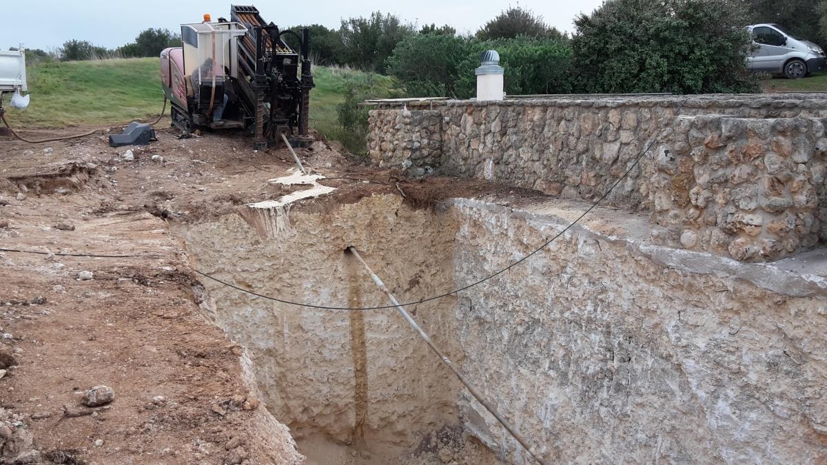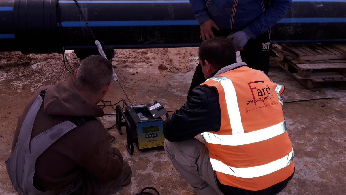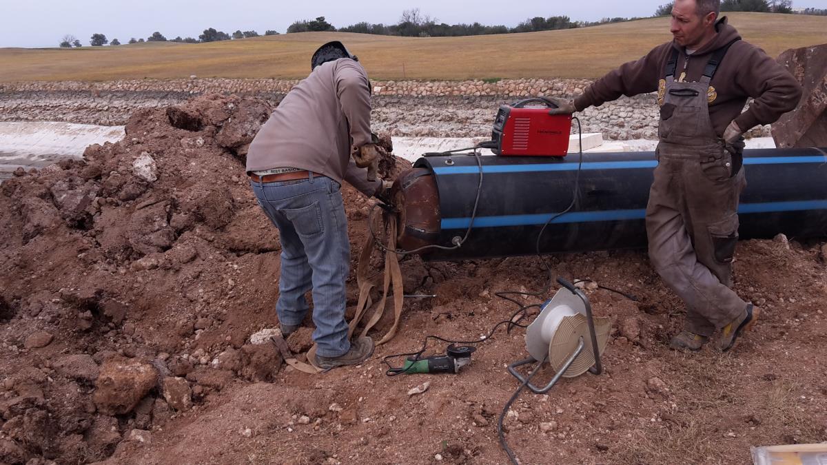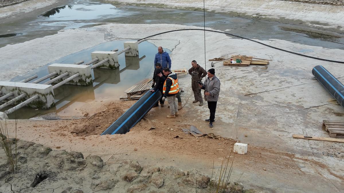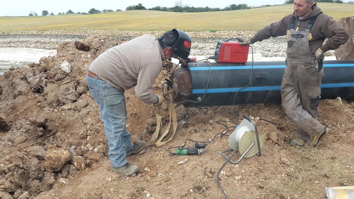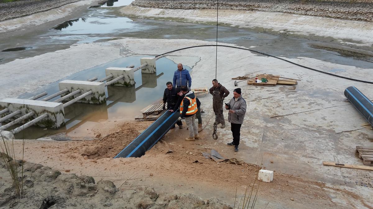 Posa di tubo in pead del diametro di 500 mm per collegare un laghetto artificiale con una vasca di compensazione e locale pompe